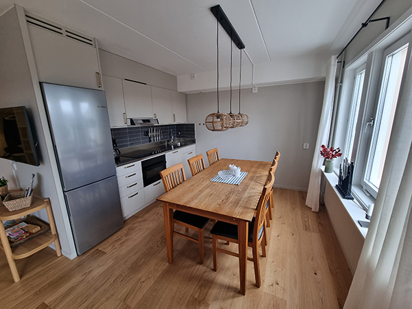 Kök och storstugan är ett rymligt tillhåll som ge ett härligt ljusinsläpp från flera fönster i söder.